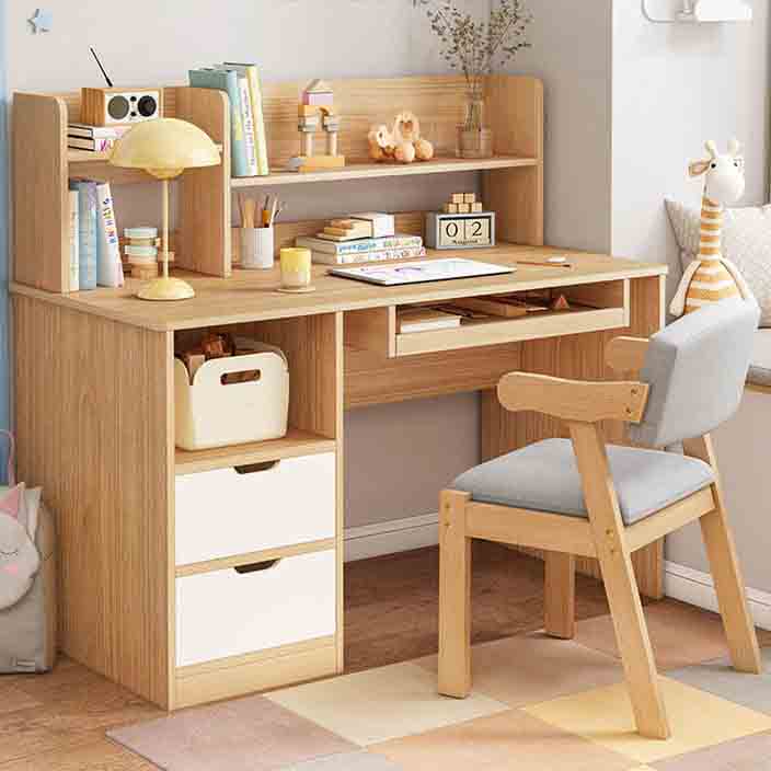 Bàn Làm Việc Màu Gỗ Tự Nhiên 100cm Có Kệ Sách – Giải Pháp Tiện Lợi Cho Không Gian Học Tập Và Làm Việc
